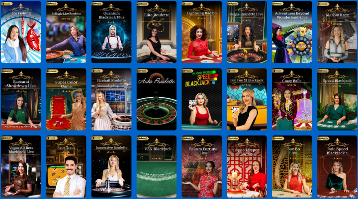 Baccarat fans aren’t left out either, with standard versions alongside Baccarat Live from MGM Grand. For something different, there are live online slots such as Buffalo Blitz Live, lotto-style games like MegaFire Blaze Lucky Ball Live, and fun game shows including Spin A Win, Adventures Beyond Wonderland, and even quirkier options like Super Sick Bowl or Ice Fishing.