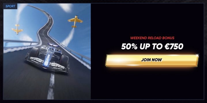 - Weekend Sports Reload – 50% up to €750 / C$1,125 / A$1,125 / NZ$1,500: Friday to Sunday, based on your highest qualifying deposit. Minimum €20 / C$30 / A$30 / NZ$40. Same 8x deposit wagering, claimed via live chat. 30-day validity.