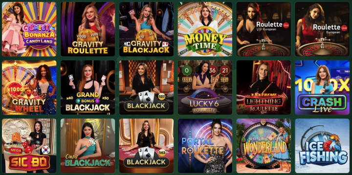 Evolution and Ezugi handle live dealers. You get blackjack variants (standard, VIP, Speed), roulette options (European, American, Lightning), baccarat, poker formats, and game shows.