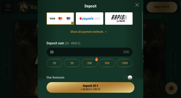 Deposits at Richard Casino