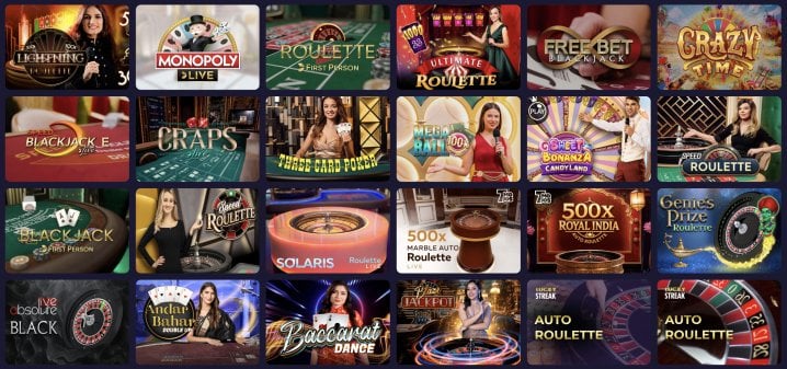 - Live Game Shows: Crazy Time, Dream Catcher, Monopoly Live, Lightning Roulette