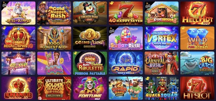 Rizzio Casino offers a sizable gaming portfolio, with over 14,600 titles from more than 95 software providers. All popular verticals are catered to, so you can expect to find thousands of slots, hundreds of live casino games, and a good variety of virtual tables, crash titles, and scratch cards.