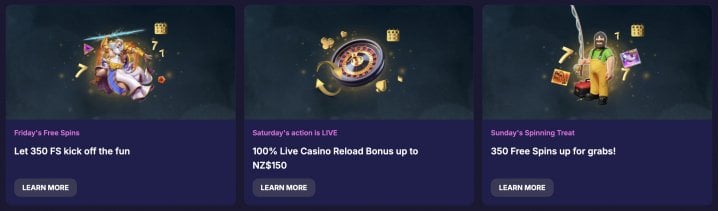 Following the welcome offers, Rizzio provides a steady schedule of ongoing bonuses and promotions that ensure there’s always something you can claim throughout the week to add more value to your deposits.