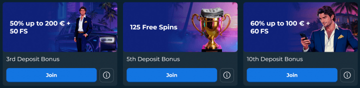Furthermore, there are caps in place that limit how much you can convert into real money from each bonus. For example, free spins winnings are capped at €100 / C$150 / A$150 (regular) and €250 / C$300 / A$300 (VIP). There are also win limits for match deposits, but these vary by stage. For the first deposit, this is €1,500 / C$2,200 / A$2,200 (regular) or €10,000 / C$15,000 / A$15,000 (VIP).