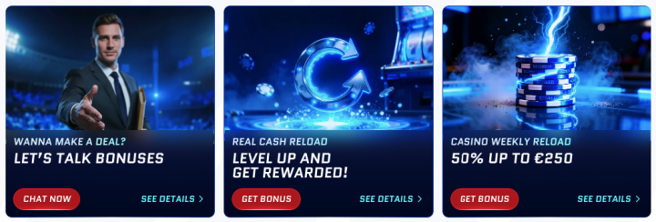 Deposits made with e-wallets such as Neteller, Skrill, and Volt are not eligible for these promotions. You'll need to use bank cards or cryptocurrencies to claim them.