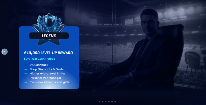 The loyalty program is a point-based system fueled exclusively by real money wagers. The program features 30 small steps that lead to 5 main ranks, culminating in the exclusive final "Legend" level.
