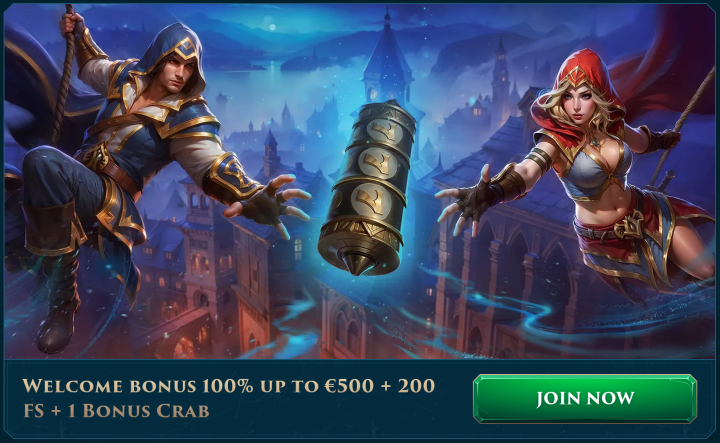 - 100% Deposit Match up to 500 EUR/USD or 750 CAD/AUD or 1,000 NZD + 200 Free Spins + 1 Bonus Crab