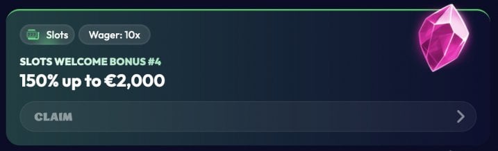 - Fourth deposit: 150% up to 2,000 EUR / 3,000 CAD / 2,000 AUD.