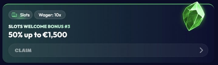 - Third deposit: 50% up to 1,500 EUR / 2,250 CAD / 1,500 AUD