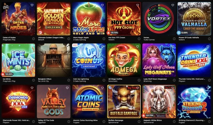 The platform features games from over 72 providers, including big names like Pragmatic Play, Evolution, Play’n GO, and 3 Oaks Gaming. This means you can expect high-quality graphics and dependable game performance.