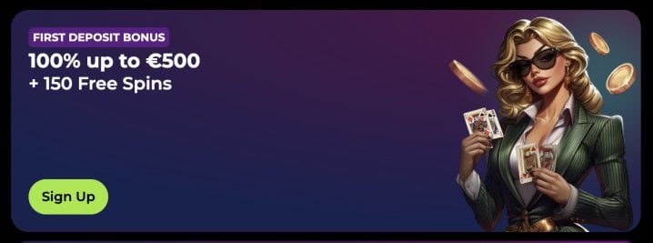 100% up to €500 + 150 Free Spins