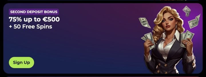- Second deposit: 55% match up to €500 / C$1,000 / A$1,000 plus 100 free spins
