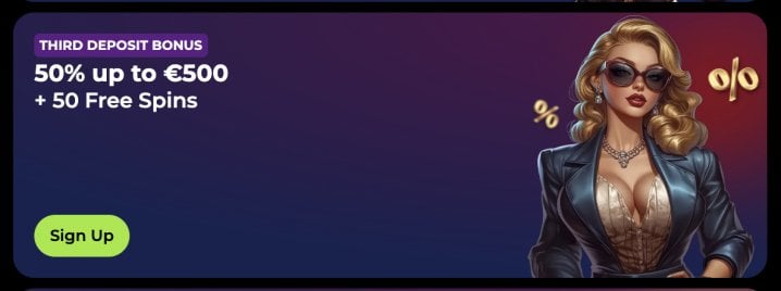 - Third deposit: 50% match up to €200 / C$300 / A$300