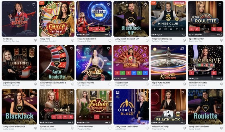 - Roulette: You can find classic tables next to multiplier-based games like XXXtreme Lightning Roulette, multi-camera games like Immersive Roulette, and fast-paced versions like Oracle Blaze Roulette.