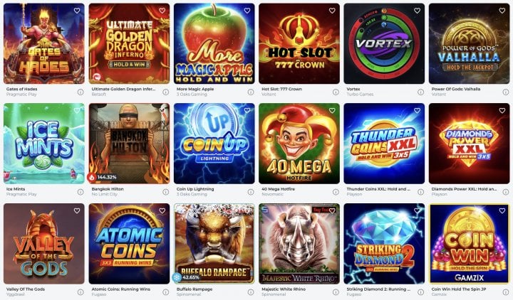 The catalog includes games from more than 90 software providers, including Pragmatic Play, Evolution, Big Time Gaming, Play’n GO, Playson, and 3 Oaks.
