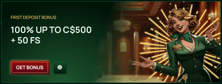 - First Deposit: 100% up to C$500 + 50 Free Spins