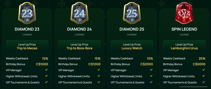 - Other Rewards - a VIP Manager, Higher Withdrawal limits and VIP Tournaments, and Quests.