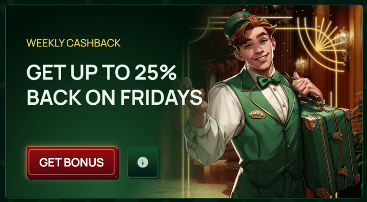 - Weekly Cashback: Every Friday, Canadian players are rewarded up to 25% back from all unsuccessful bets on anything except live casino games placed during the week. The percentage you’ll receive depends on your loyalty level, ranging from 3% (Bronze) to 25% (King Lion). The funds you receive come with a 5x rollover requirement and a 20x cap on winnings.