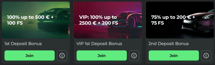 | 2nd Deposit | 75% + 75 Free Spins | 200 EUR / 300 CAD / 300 AUD / 400 NZD |