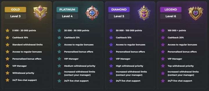 | VIP Level | Points Required | Weekly Cashback |