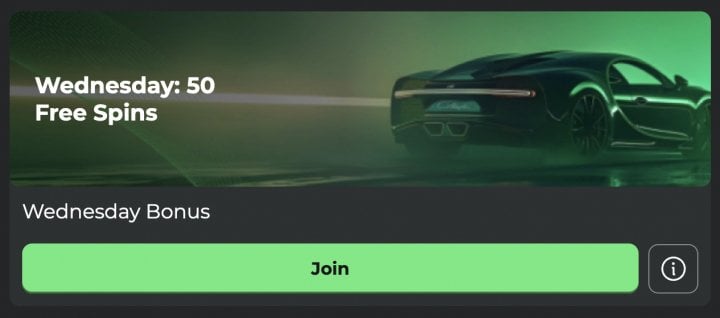 - Wednesday Bonus: Deposit at least 20 EUR / 30 CAD / 30 AUD / 40 NZD on a Wednesday for 50 free spins. You have to wager the deposit once.