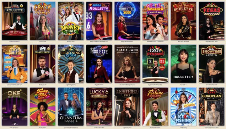 - Game Shows: All the major hits, such as Crazy Time and Funky Time, are available.