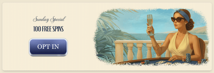 - Sunday Special: If you deposit 20 EUR / 30 CAD / 30 AUD / 40 NZD on a Sunday, you get 100 spins on the Johnny Cash slot. Any money you win from these spins must be wagered 40x.