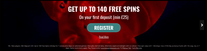 - First Deposit Bonus: Deposit £25 and receive 140 bonus spins worth £0.10 per spin.