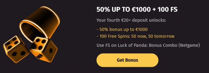 - Fourth Deposit: 50% up to €1000 / C$1500 / A$1500 / NZ$1500 + 100 FS – 50/day x2 (Luck of Panda: Bonus Combo)