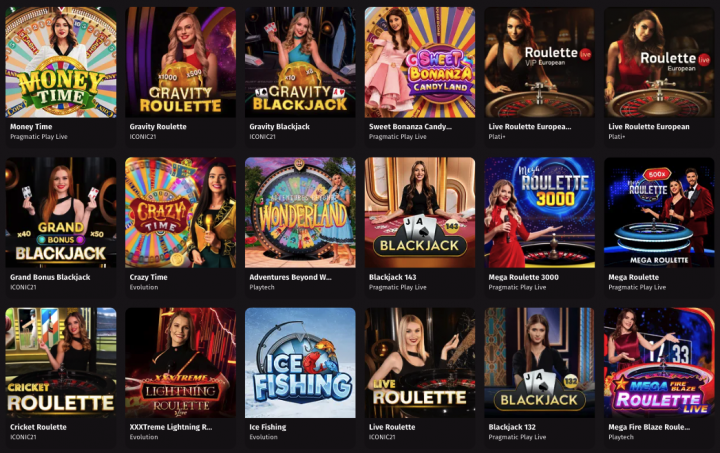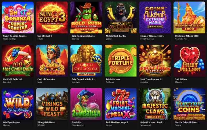 Slots cover the basics: classic layouts, video slots, Megaways, cluster pays, and bonus buy features. Hold & Win and Ways to Win formats show up regularly, with titles like Gates of Olympus, Sweet Bonanza, and Big Bass Bonanza representing the modern high-volatility style. RTP percentages aren’t displayed on the games themselves- you’ll need to check provider sites separately if you want exact figures.