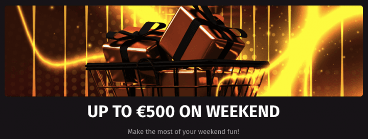 From Saturday 00:01 to Sunday 23:59 UTC, deposit at least €30 / C$45 / A$45 / NZ$45 with code WEEKEND to get 50% up to €500 / C$750 / A$750 / NZ$750. The bonus carries 40x wagering on the bonus amount and expires after 7 days. You can claim this once per weekend.