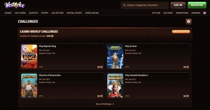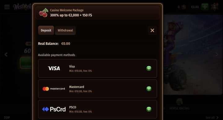 WestAce Casino Welcome Bonus – 300% Up to 2,000 EUR + 150 Free Spins