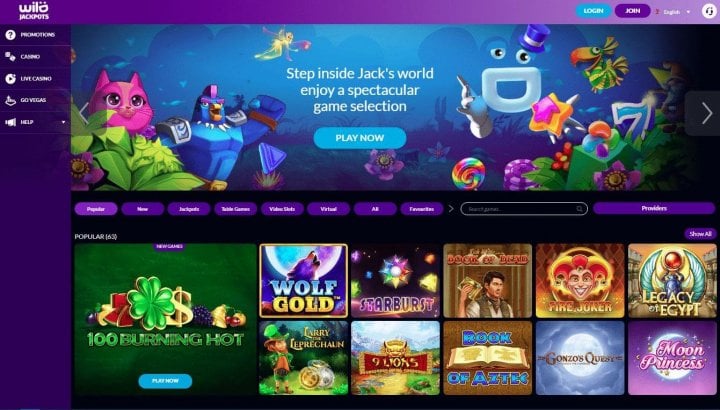 There are more than 1800 games at Wild Jackpots Casino. These can all be found in ‘Casino’, Live Casino’, and ‘Go Vegas’ in the left-hand menu. ‘Casino’ is where you will find most of the games and these are broken down into subcategories. Those are ‘Popular’, ‘New’, ‘Jackpots’, ‘Video Slots’, ‘Virtual’, ‘All’, and ‘Favourites. Players can also search games by name or by providers.