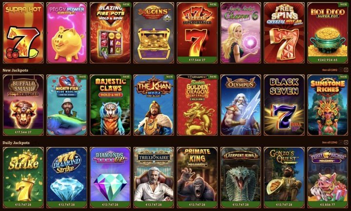 In the main menu, WildRobin has a dedicated Jackpots section alongside Casino and Live Casino, with close to 300 fixed and progressive jackpot games. Progressive slots are grouped under Jackpot Play and Daily Jackpots, while fixed jackpot titles sit in their own categories for players who prefer more predictable payouts.