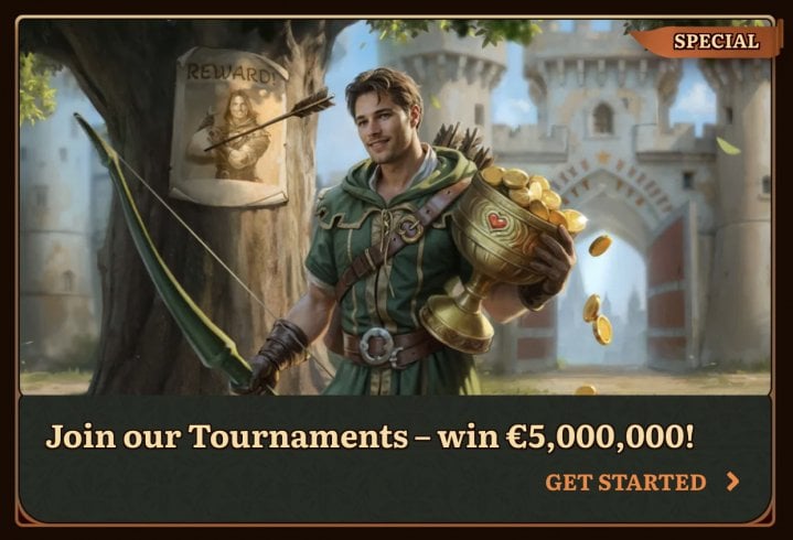 - Spin Rally: Up to 10 players can take part in WildRobin Casino’s 15-minute competitions. Points are awarded for wins and streaks, and leaderboard prizes reach up to €30 / C$45 / A$45 / NZ$60.
