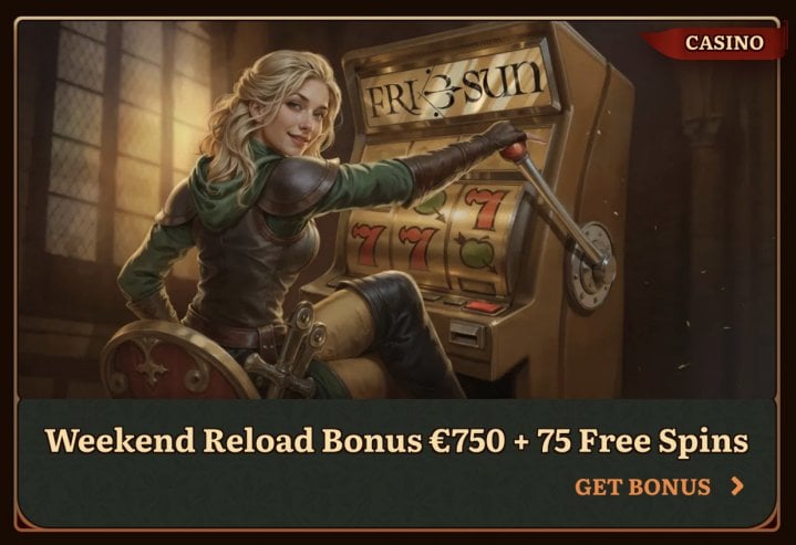 - Weekend Reload: Claim a 50% bonus up to €750 / C$1,125 / A$1,125 / NZ$1,500 anytime from Friday to Sunday with a €20 / C$30 / A$30 / NZ$40 minimum deposit. Plus, if you fund your account with at least €50 / C$75 / A$75 / NZ$100, you’ll also receive 75 free spins. The bonus comes with a 35 (B+D) rollover, while winnings from spins must be wagered 40x.
