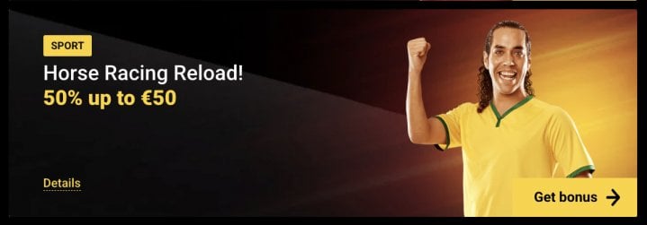 - Horse Racing Reload – 50% up to €50 / C$75 / NZ$100: Min bet €20 / C$30 / NZ$40 at odds 3.00+. Once per day, 6x rollover, 30 days.