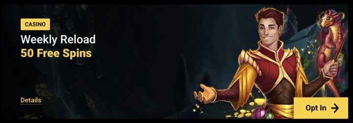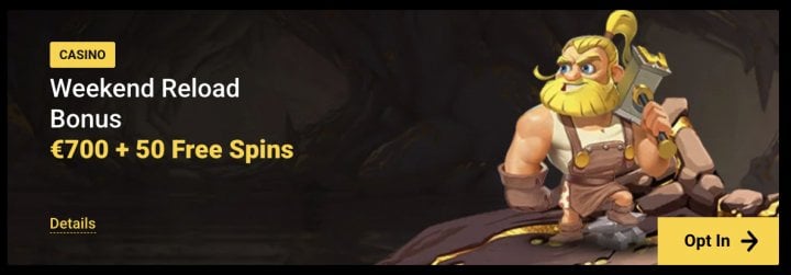 - Weekend Reload Bonus – 50% up to €700 / C$1,050 / NZ$1,400 + 50 Free Spins