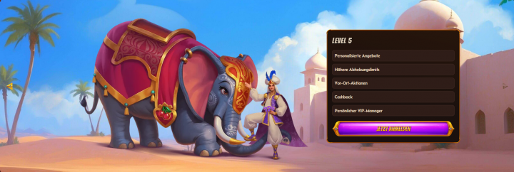 Ab dem Level 3 im VIP-Programm kannst du zudem jede Woche ein automatischen Cashback Bonus erhalten. Hierbei werden die Nettoverluste deiner Echtgeldeinsätze am Spielautomaten als Berechnungsgrundlage genutzt.
