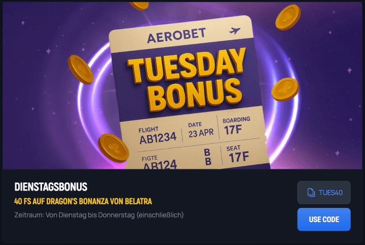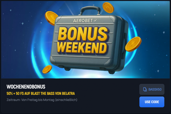Zusätzlich kannst du mit den entsprechenden Aerobet Bonuscodes wöchentliche Reload Boni nutzen.