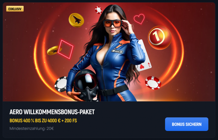 Bei Aerobet startest du direkt mit einem großen Willkommenspaket von bis zu 6.000€ und 450 Freispielen. Im Anschluss bekommst du als Spieler regelmäßig neue Reload Boni und Aktionen.