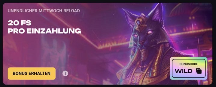 - Unendlicher Mittwoch Reload – 20 Freispiele auf jede Einzahlung ab 20€