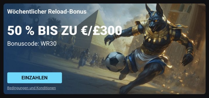 - Wöchentlicher Reload Bonus – 50% bis zu 300€