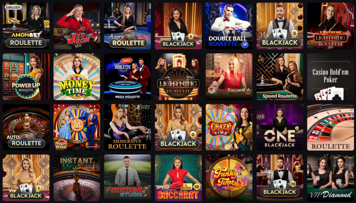Live Casino, Live Game Shows sowie Karten- und Tischspiele