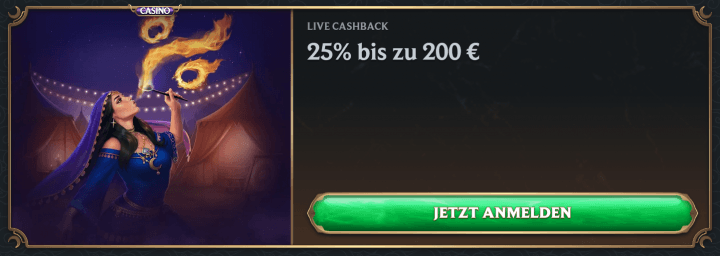 - Live Casino Cashback - 25% bis zu 200€