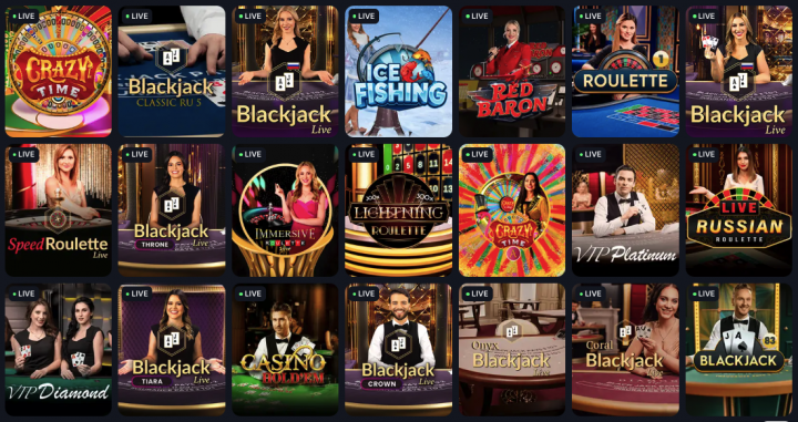 Ice Fishing, Crazy Time, Red Baron, Immersive Roulette, Crazy Balls
