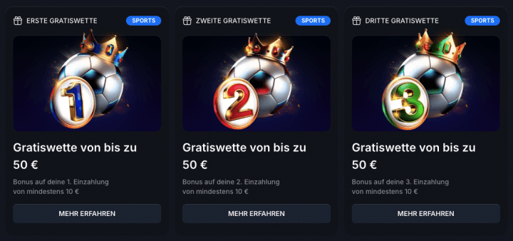 - 3. Wettbonus für Neukunden - 10% bis zu 50€