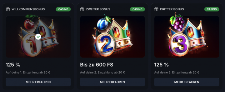 Mit einem steigenden VIP-Level erweitern sich auch deine Vorteile. Dazu gehören unter anderem eine individuelle Betreuung durch einen VIP-Manager, exklusive Angebote und Aktionen sowie zusätzliche Belohnungen, die sich an deinem persönlichen Spielverhalten orientieren. Ergänzt wird der VIP-Club durch regelmäßige Cashback Boni sowie besondere Extras wie ein jährliches Geburtstagsgeschenk. Deine gesammelten Punkte lassen sich dann im Bonus-Shop einlösen. Dort kannst du sie gegen Freispiele oder Lootboxen eintauschen, die unterschiedliche Belohnungen enthalten.