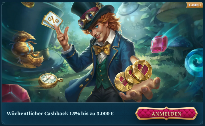 - Cashback Casino Bonus - bis zu 15% und maximal 3.000€