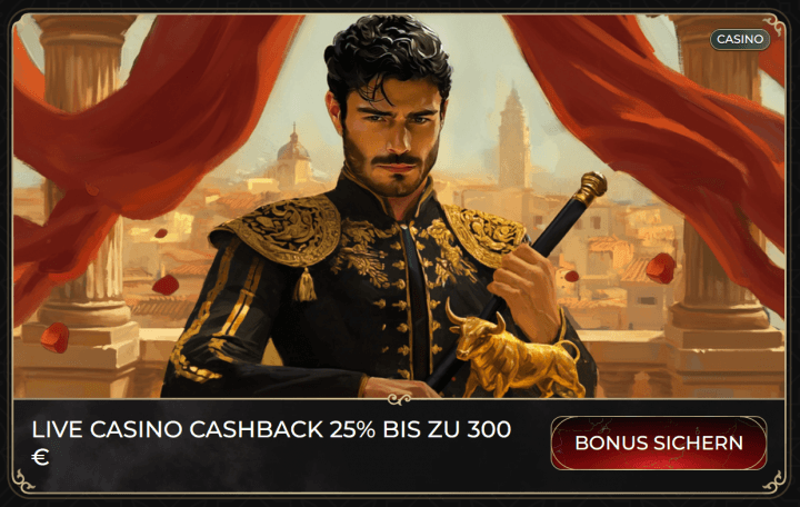 - Live Casino Cashback Bonus - 25% bis zu 300€